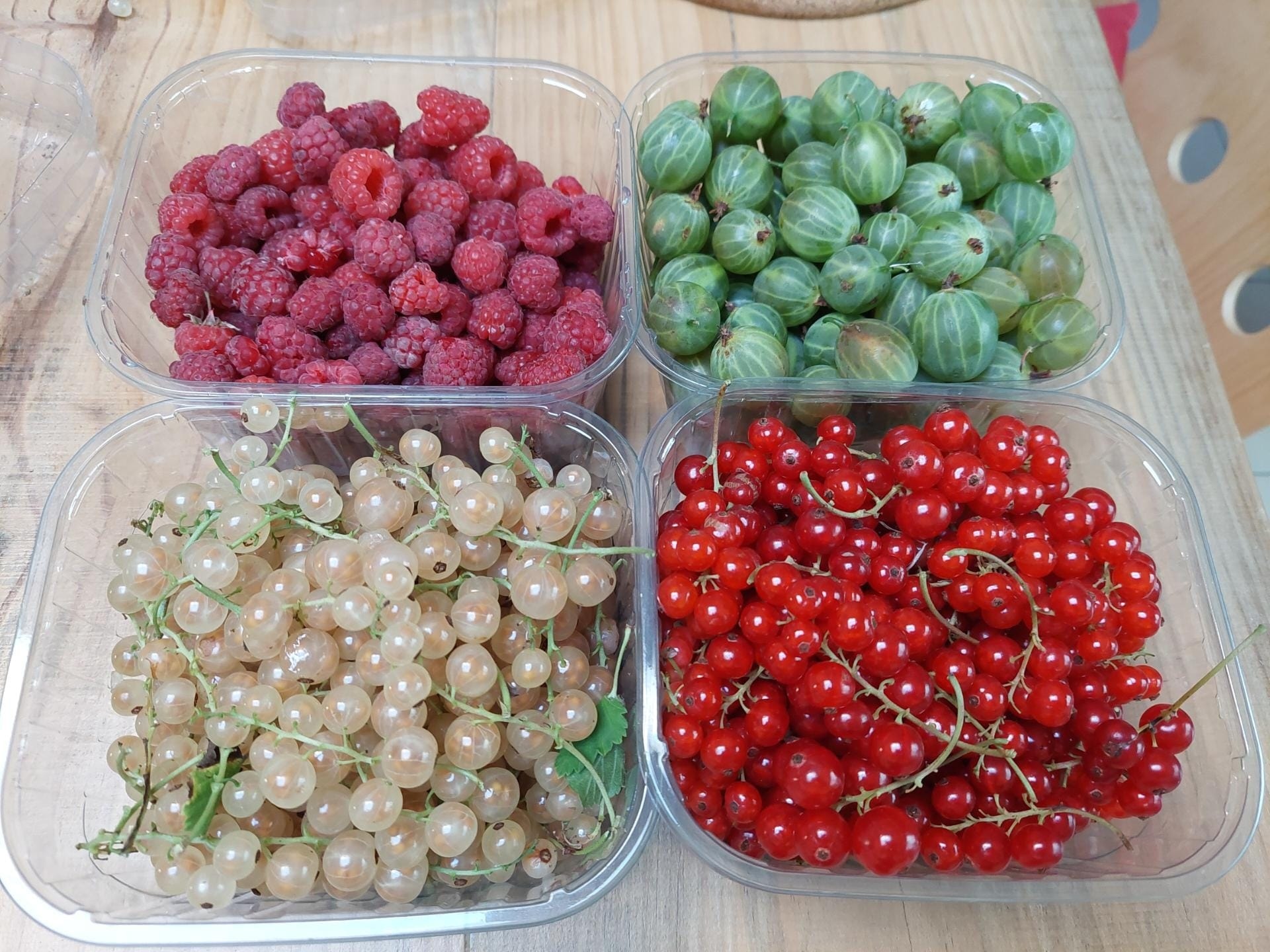 - Voorjaar en vroege zomer (juni-juli): Aardbeien, frambozen, rode, witte, zwarte en roze bessen, kruisbessen, zomerframbozen